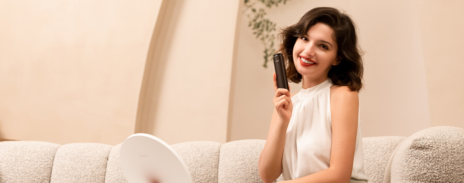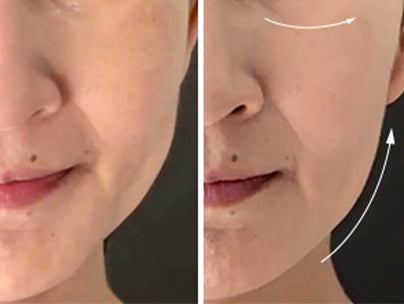 Allumez l’appareil de beauté Vellara et faites-le glisser sur vos joues et votre front. Répétez 2 à 3 fois par semaine pour une peau visiblement plus ferme.