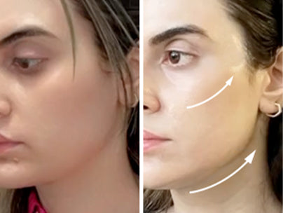 - Raffermit et lift immédiatement le visage tout en réduisant les gonflements et en définissant la ligne de la mâchoire.